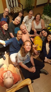 Vivasvan, with family—Ananda Rupa and 2½ year old, Chaya—brought us to the kirtan spot outside the Cobo Center for the crowds at the Detroit Electronic Music Festival. This event is a big deal for the youth who come to listen and party. Some folks, who walked by, slowed down to listen and then moved on, were in attire that is very un-monk-like. In general, they liked the music and energy we were creating. Only the amp/speaker we used was of an unplugged nature.